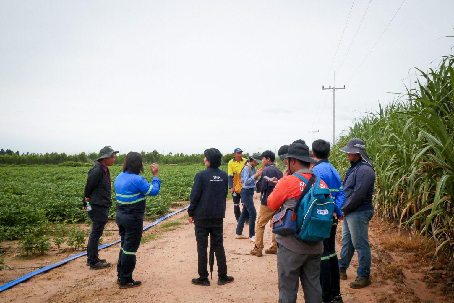 วันที่ 17 สิงหาคม 2567 มหาวิทยาลัยขอนแก่น นำโดย ศ.ดร.ธิดารัตน์ บุญมาศ รองอธิการบดีฝ่ายวิสาหกิจและสังคมยั่งยืน ลงพื้นที่ติดตามและประเมินผลการดำเนินงานด้านการขับเคลื่อนเศรษฐกิจและสังคมฐานราก ตามแนวทาง BCG Model ที่มุ่งเน้นการใช้ประโยชน์จากถั่วเหลืองเพื่อการจัดการและพัฒนาความสมบูรณ์ของดินในพื้นที่ปลูกอ้อย ณ แปลงทดลองการผลิตเมล็ดพันธุ์ถั่วเหลืองพันธุ์ มข 60 ในฤดูฝน ที่ไร่บัวพักเกวียน บริษัท มิตรผลวิจัย พัฒนาอ้อยและน้ำตาล จำกัด