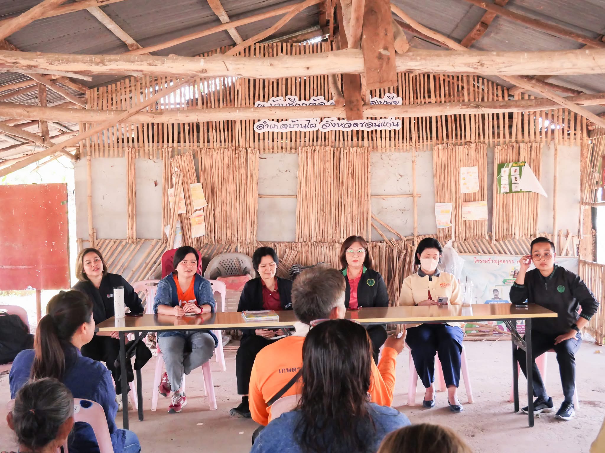 • กลุ่มวิสาหกิจชุมชนผ้าไหมมัดหมี่บ้านหัวฝาย ตำบลปอแดง อำเภอชนบท นางสุภาณี ภูแล่นกี่ ประธานกลุ่มฯ พร้อมสมาชิกกลุ่มกว่า 20 คน ร่วมแลกเปลี่ยนความเห็นเกี่ยวกับการพัฒนาผลิตภัณฑ์และการเพิ่มมูลค่าผ้าไหมในตลาดปัจจุบัน
