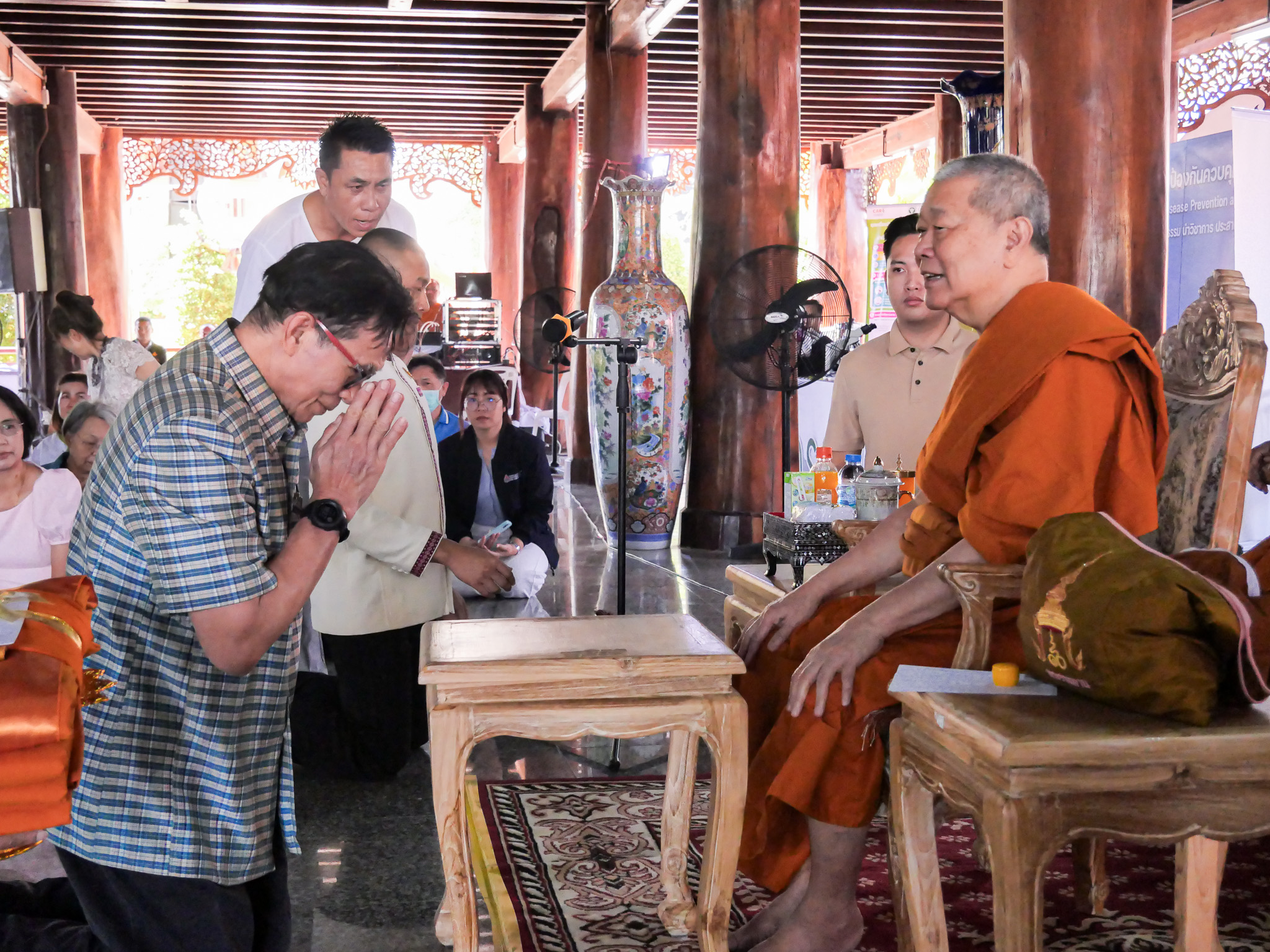 ในพิธีทอดผ้าป่ามหากุศลเพื่อสมทบทุนกองทุนเพื่อการป้องกันและแก้ไขโรคพยาธิใบไม้ตับและมะเร็งท่อน้ำดี ได้รับความเมตตาจาก สมเด็จพระมหารัชมงคลมุนี (ธงชัย ธมฺมธโช) และ พระวชิรญาณวิศิษฏ์ วิ. (สุริยันต์ โฆสปญฺโญ) เป็นประธานฝ่ายสงฆ์ โดยกองทุนที่จัดตั้งขึ้นจะนำไปใช้ใน