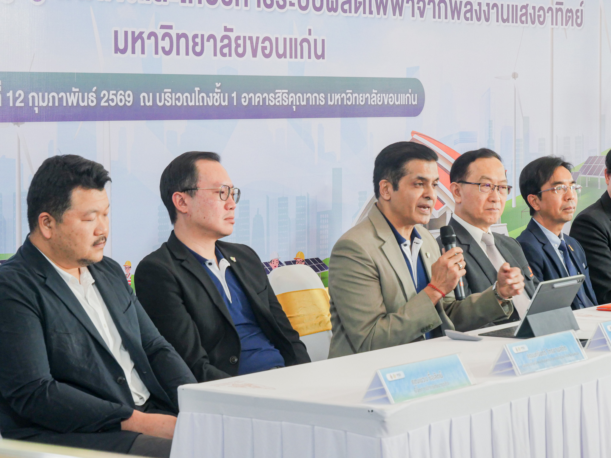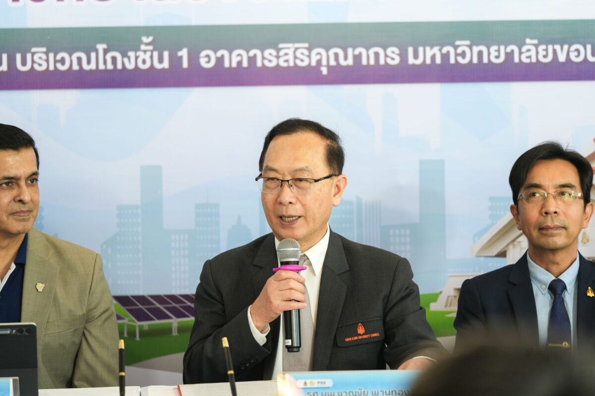 รองศาสตราจารย์ นายแพทย์ชาญชัย พานทองวิริยะกุล กล่าวว่า มหาวิทยาลัยขอนแก่นมีประวัติการพัฒนามายาวนานกว่า 60 ปี บนพื้นที่กว่า 5,500 ไร่ และมุ่งมั่นขับเคลื่อนการพัฒนาอย่างยั่งยืนในทุกมิติ ทั้งด้านกายภาพ สิ่งแวดล้อม เศรษฐกิจ และสังคม ภายใต้แผนยุทธศาสตร์ “Carbon Neutrality University” ซึ่งกำหนดเป้าหมายบรรลุความเป็นกลางทางคาร์บอนภายในปี พ.ศ. 2572 โดยมี 6 แผนงานสำคัญ และโครงการพลังงานแสงอาทิตย์ครั้งนี้ถือเป็นกลไกหลักในการขับเคลื่อนเป้าหมายดังกล่าว ให้เป็นรูปธรรม สอดคล้องกับ SDG 7: Affordable and Clean Energy และ SDG 13: Climate Action