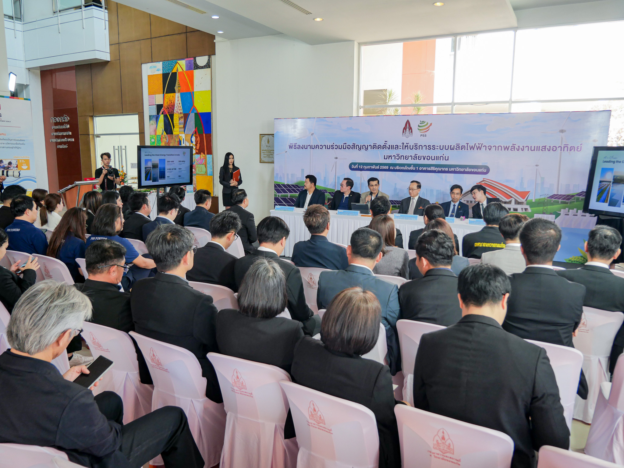 มหาวิทยาลัยขอนแก่น ลงนามในสัญญาติดตั้งและให้บริการระบบผลิตไฟฟ้าจากพลังงานแสงอาทิตย์ ร่วมกับ HYAPSS กำลังการผลิตรวม 30 เมกะวัตต์พีก (MWp) คาดสามารถลดการปล่อยก๊าซเรือนกระจกได้มากกว่า 15,000 ตันคาร์บอนไดออกไซด์เทียบเท่าต่อปี เดินหน้าขับเคลื่อนยุทธศาสตร์ “Carbon Neutrality University” เพื่อบรรลุความเป็นกลางทางคาร์บอนภายในปี พ.ศ. 2572 อย่างเป็นรูปธรรม