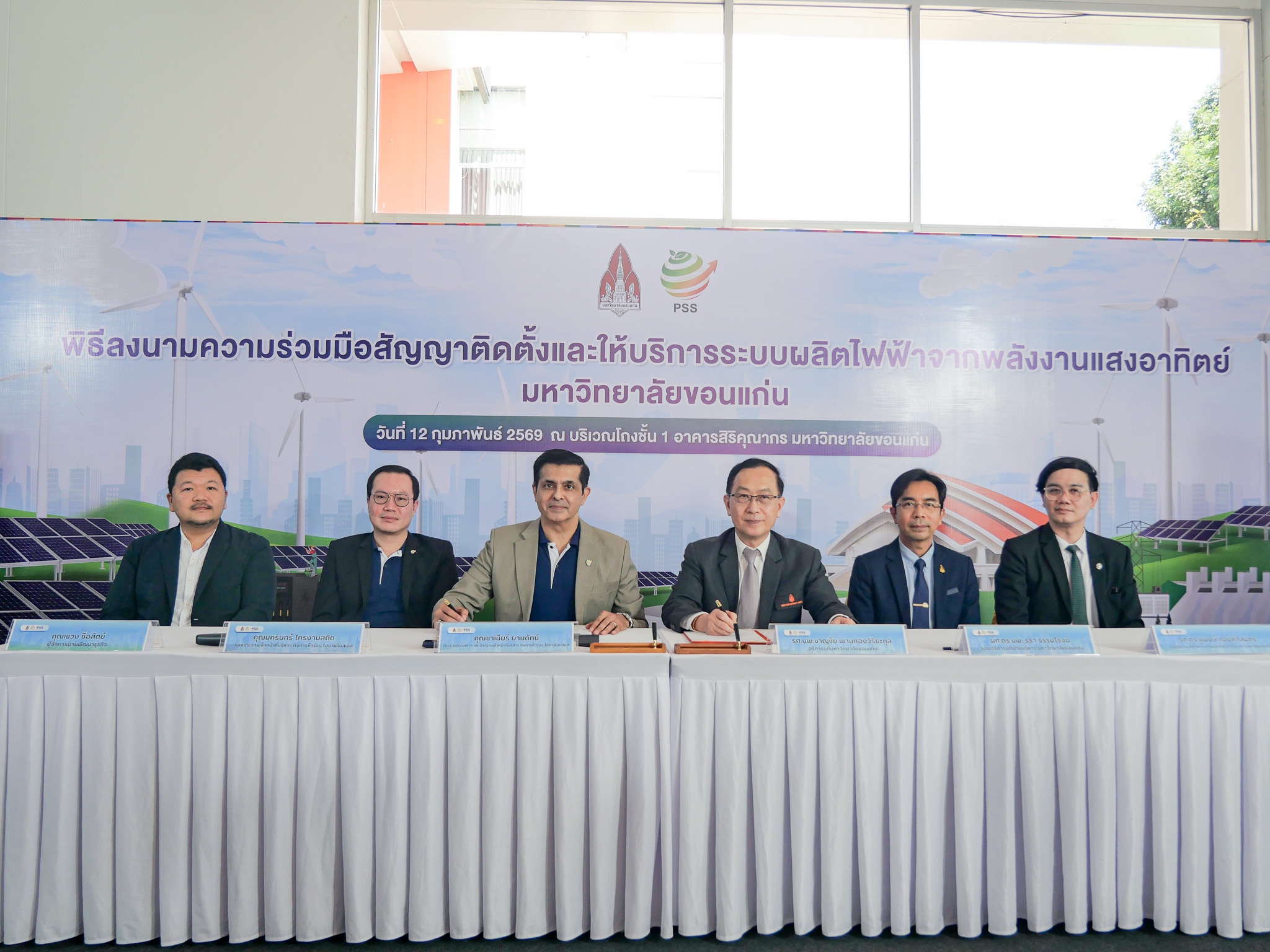เมื่อวันพฤหัสบดีที่ 12 กุมภาพันธ์ พ.ศ. 2569 เวลา 13.30–15.00 น. ณ โถงชั้น 1 อาคารสิริคุณากร สำนักงานอธิการบดี มหาวิทยาลัยขอนแก่น ได้จัดพิธีลงนามในสัญญาโครงการติดตั้งและให้บริการระบบผลิตไฟฟ้าจากพลังงานแสงอาทิตย์ ระหว่างมหาวิทยาลัยขอนแก่นกับ HYAPSS โดยมีผู้ลงนามและพยานร่วมลงนามในพิธี ประกอบด้วยฝ่ายมหาวิทยาลัยขอนแก่น รองศาสตราจารย์ นพ.ชาญชัย พานทองวิริยะกุล อธิการบดีมหาวิทยาลัยขอนแก่น ผู้ช่วยศาสตราจารย์ นพ.ธรา ธรรมโรจน์ รองอธิการบดีฝ่ายบริหาร รองศาสตราจารย์ ดร.ชูพงษ์ ทองคำสมุทร รองอธิการบดีฝ่ายกายภาพและสิ่งแวดล้อม และฝ่ายกิจการค้าร่วม ไฮยาพีเอสเอส คุณซาเมียร์ ยามดักนี ประธานกรรมการและประธานเจ้าหน้าที่บริหาร คุณนครินทร์ ไทรงามสถิต รองประธานเจ้าหน้าที่บริหาร คุณเชวง ซื่อสัตย์ ผู้จัดการฝ่ายพัฒนาธุรกิจ พร้อมด้วยคณะผู้บริหาร ผู้แทนภาครัฐ ภาคเอกชน สื่อมวลชน และผู้มีเกียรติร่วมเป็นสักขีพยาน