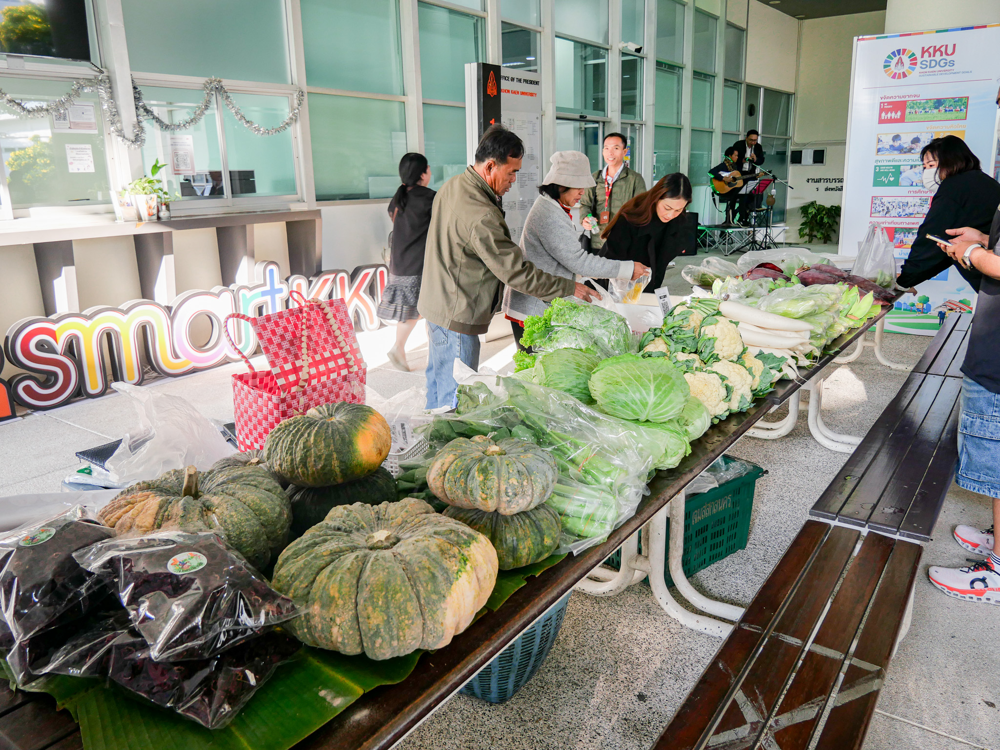 กิจกรรมดังกล่าวจัดขึ้นตามแนวทาง เป้าหมายการพัฒนาที่ยั่งยืน (SDGs) โดยเฉพาะ SDG 2: ขจัดความหิวโหย (Zero Hunger) มุ่งสร้างพื้นที่แห่งความอิ่มสุขที่เปิดโอกาสให้บุคลากรจากหน่วยงานในสังกัดสำนักงานอธิการบดี นำสินค้าคุณภาพดี ราคาย่อมเยามาจำหน่าย ควบคู่กับการเชิญเครือข่ายวิสาหกิจชุมชนในจังหวัดขอนแก่นเข้าร่วมออกร้าน เพื่อกระจายรายได้และสนับสนุนผลิตภัณฑ์ท้องถิ่น