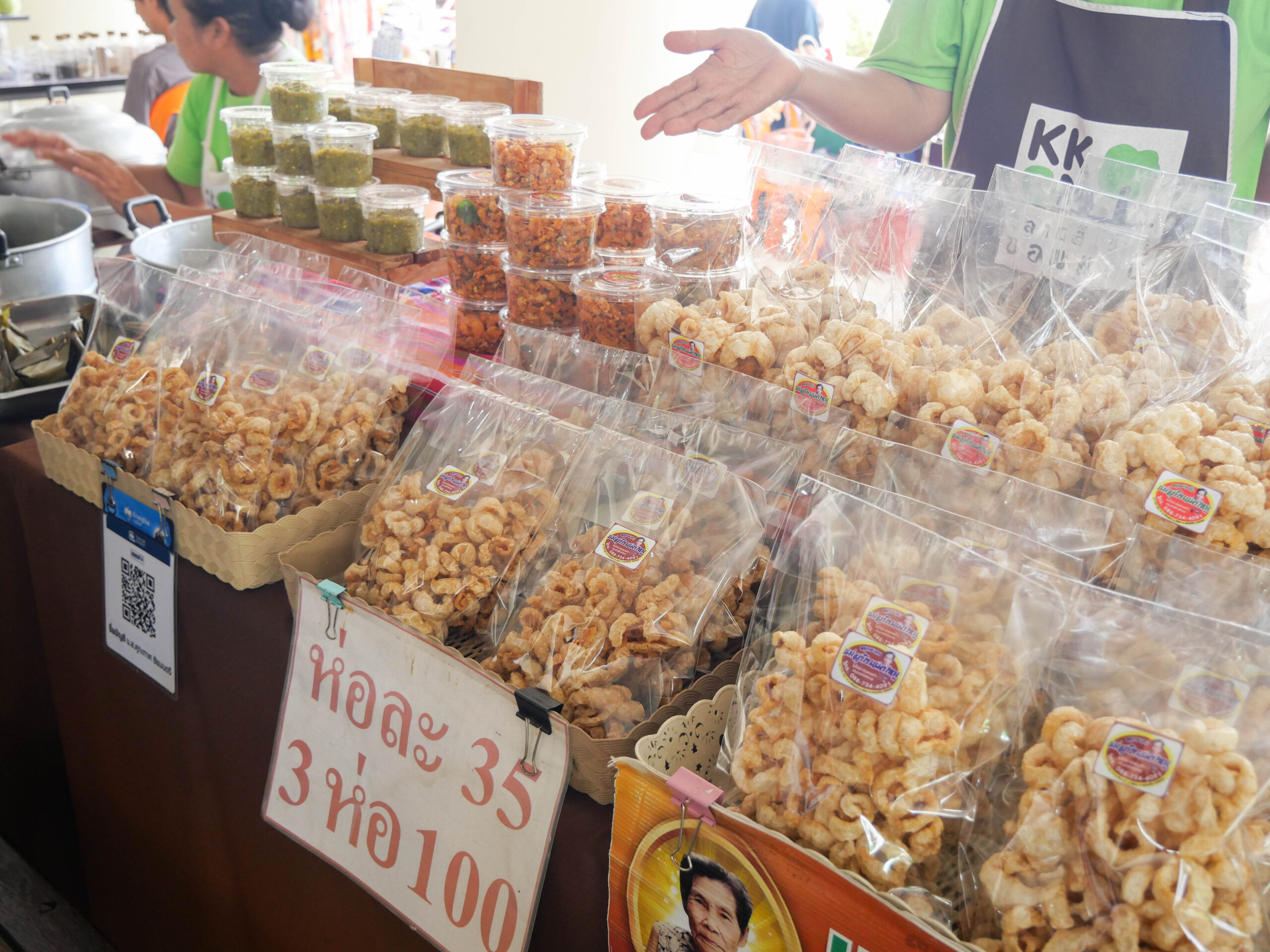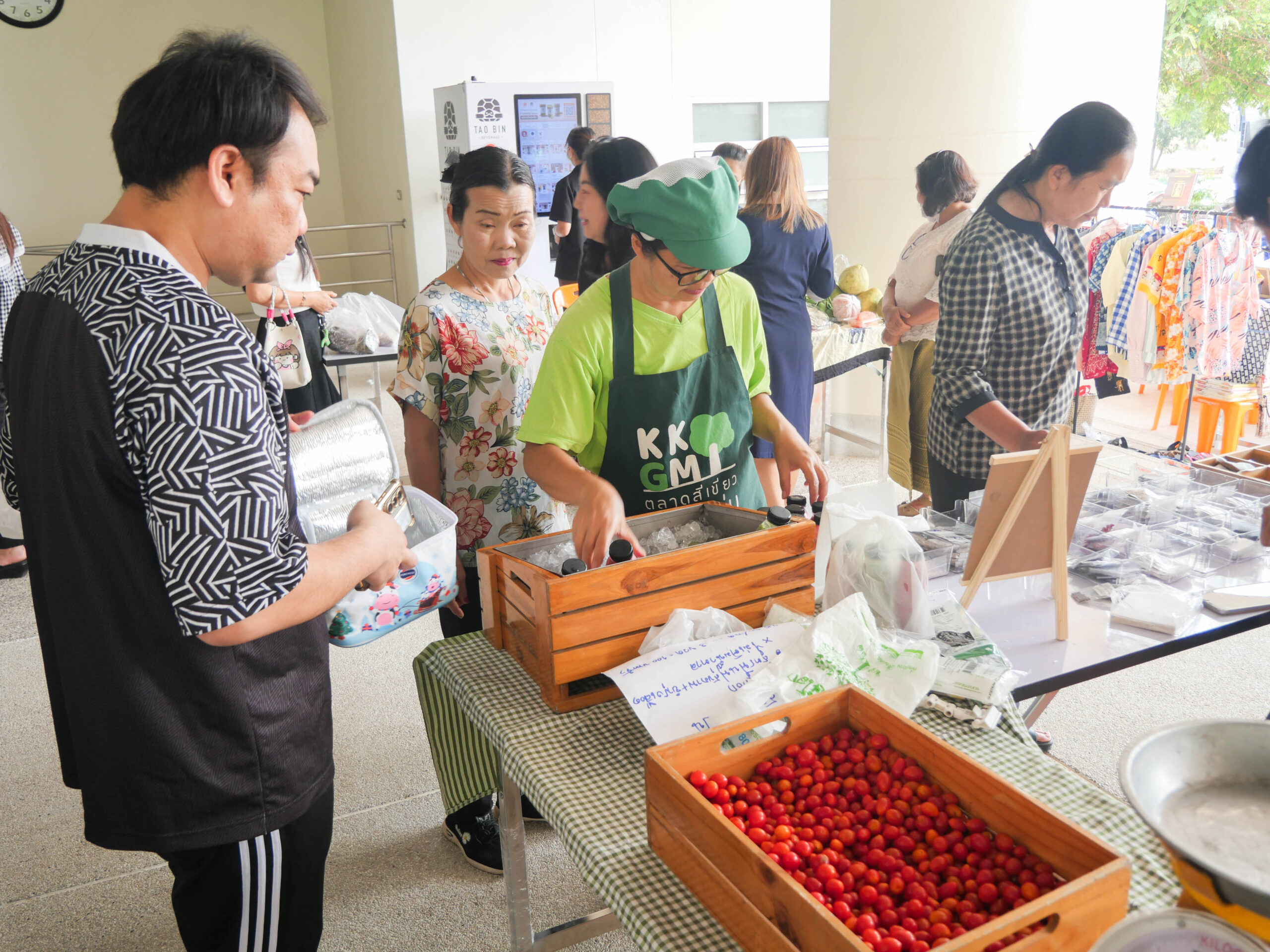 ภายในงานเต็มไปด้วยบรรยากาศคึกคักจากร้านค้าหลากหลายเครือข่าย วิสาหกิจชุมชน และหน่วยงานภายในมหาวิทยาลัย อาทิ กลุ่มวิสาหกิจบ้านโพธิ์ตาก สวนสลัดจันทร์ดาว นายโด่งไส้กรอก สินค้าเกษตรคุณเจี๊ยบ เมืองอัจฉริยะโนนกู่ ตลาดเขียว ชมรมบุคลากรอาวุโส มข. รวมถึงผลิตภัณฑ์ดินหมักและวัสดุเพาะกล้าพืช (Sci Soil) จากคณะวิทยาศาสตร์ ที่นำสินค้าอาหารสด อาหารแปรรูป ผักปลอดภัย และผลิตภัณฑ์เพื่อการเกษตรมาจำหน่าย สร้างความสนใจให้กับผู้ร่วมงานตลอดทั้งวัน