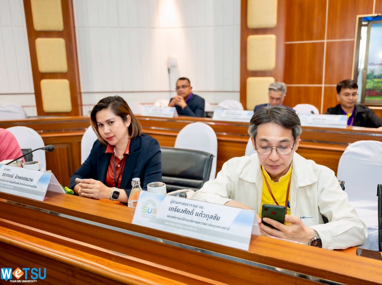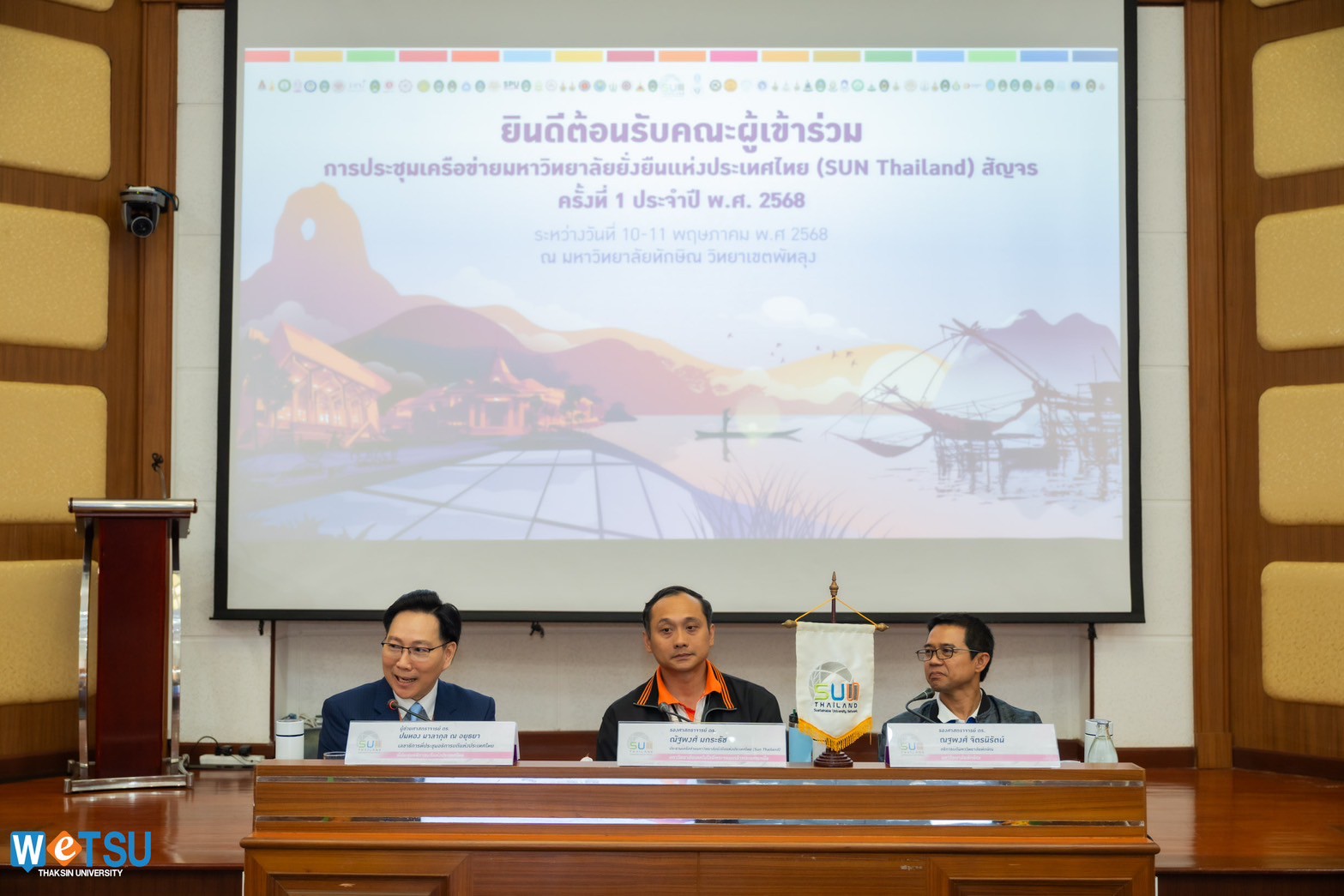 รองศาสตราจารย์ ดร.ณฐพงศ์ จิตรนิรัตน์ อธิการบดีมหาวิทยาลัยทักษิณ กล่าวต้อนรับผู้เข้าร่วมประชุม โดยมีผู้ช่วยศาสตราจารย์ ดร.ปมทอง มาลากุล ณ อยุธยา เลขาธิการที่ประชุมอธิการบดีแห่งประเทศไทย กล่าวเปิดการประชุมและเน้นย้ำถึงบทบาทของสถาบันอุดมศึกษาในการเป็นผู้นำการเปลี่ยนผ่านสู่สังคมยั่งยืน ทั้งในด้านสิ่งแวดล้อม เศรษฐกิจ และวัฒนธรรมองค์กร