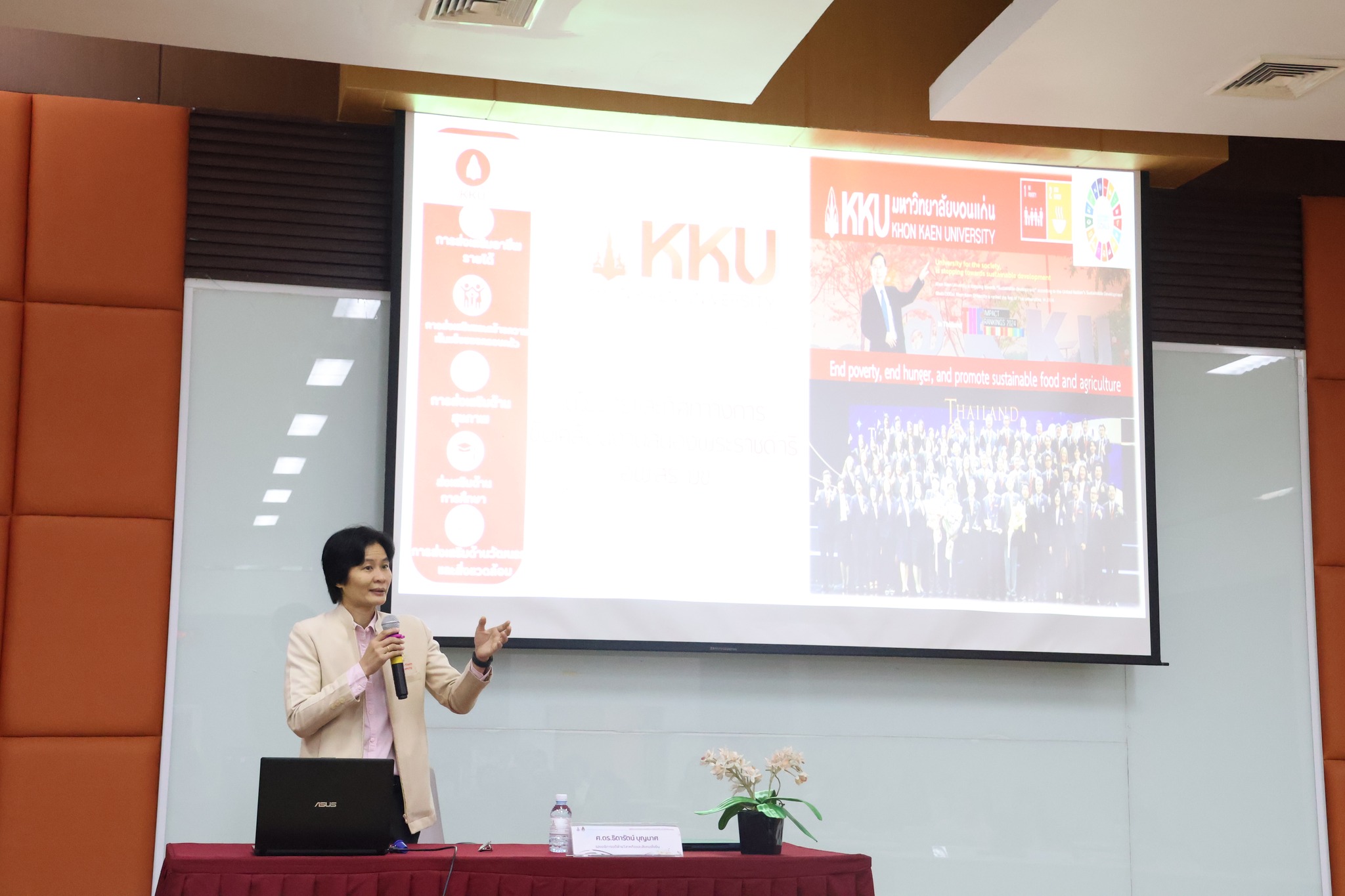 และได้รับเกียรติจาก ดร.ปิยรัษฎ์ ปริญญาพงษ์ เจริญทรัพย์ ผู้ช่วยผู้อำนวยการ อพ.สธ. และเลขานุการคณะกรรมการ อพ.สธ. บรรยายพิเศษในหัวข้อ “แนวทางการสนองพระราชดำริโครงการอนุรักษ์พันธุกรรมพืชอันเนื่องมาจากพระราชดำริฯ (อพ.สธ.) ” และบรรยายพิเศษในหัวข้อ “นโยบายและทิศทางการขับเคลื่อนงานสนองพระราชดำริ อพ.สธ. ของมหาวิทยาลัยขอนแก่น” โดย ศ.ดร.ธิดารัตน์ บุญมาศ รองอธิการบดีฝ่ายวิสาหกิจและสังคมยั่งยืน