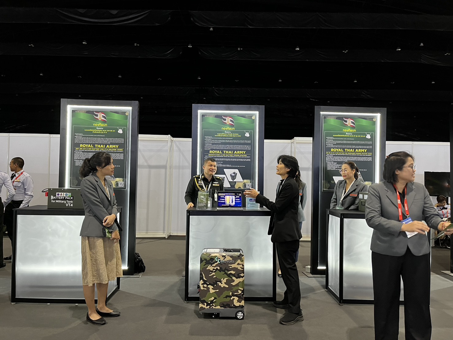 สำหรับปีนี้ kkUVolts ได้นำเสนอชุดเทคโนโลยีแบตเตอรี่ลิเทียมไอออนที่ผ่านการออกแบบและทดสอบตามมาตรฐานสากล ทั้ง 24V 100Ah Battery Pack สำหรับรถถัง VT-4 ที่ทนต่อแรงสั่นสะเทือนและรองรับการใช้งานหนักในภาคสนามตามมาตรฐาน MIL-STD-810H และ UNR100, 24V 50Ah 6T Battery Pack สำหรับรถถัง Commando Stingray ที่พร้อมรองรับระบบ NATO พร้อมคู่มือภาษาไทยเพื่อเพิ่มประสิทธิภาพการปฏิบัติงานของเจ้าหน้าที่ และ 3600W / 5kWh Portable Power Station แหล่งจ่ายพลังงานเคลื่อนที่สำหรับภารกิจภาคสนามและงานช่วยเหลือฉุกเฉิน เทคโนโลยีเหล่านี้สะท้อนศักยภาพของนักวิจัยไทยในการพัฒนานวัตกรรมพลังงานขั้นสูงที่ตอบโจทย์ทั้งความมั่นคงและความยั่งยืนด้านพลังงาน