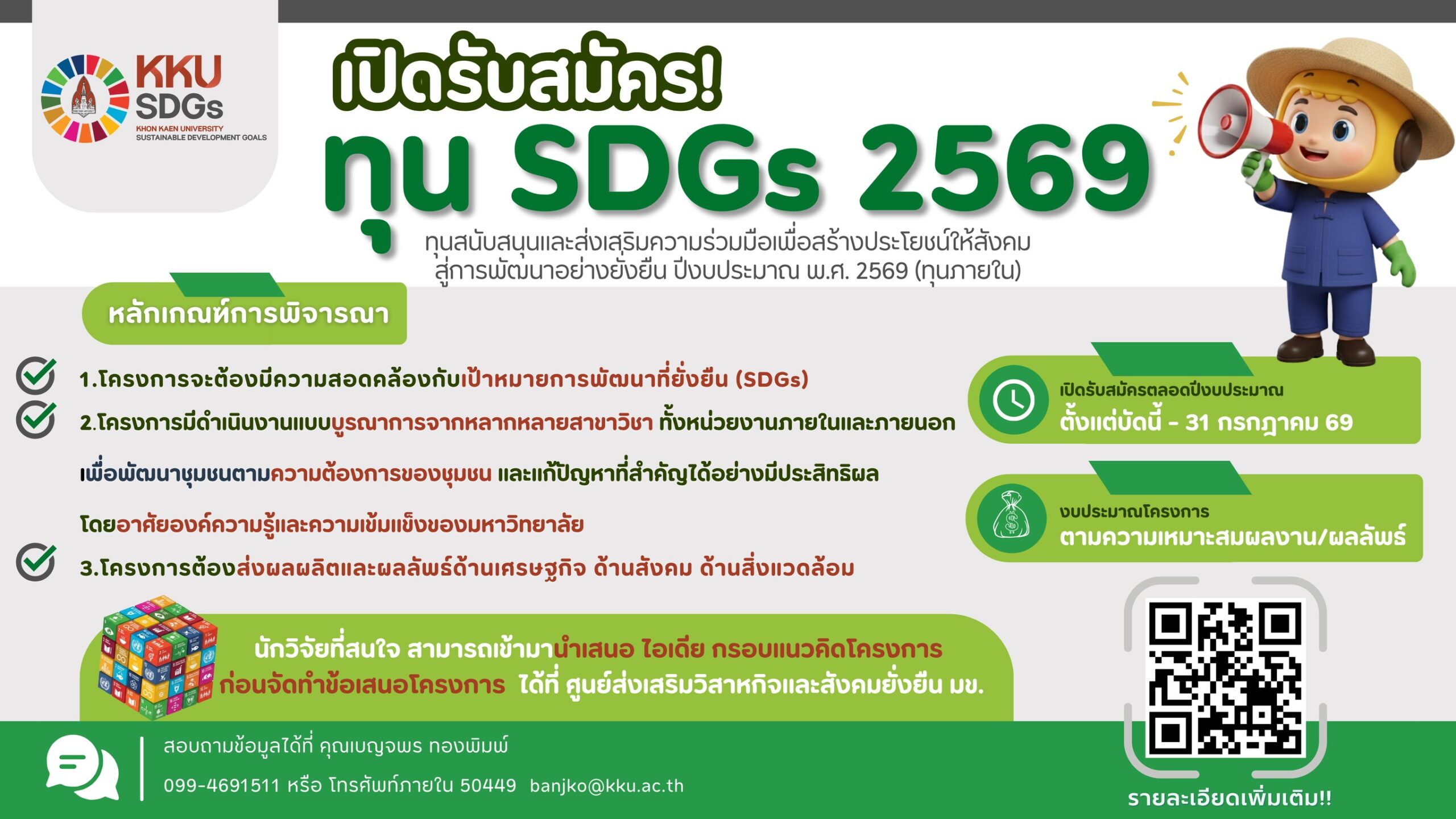 สอบถามข้อมูลเพิ่มเติม banjko@kku.ac.th (คุณเบญพร) ภายใน 50449