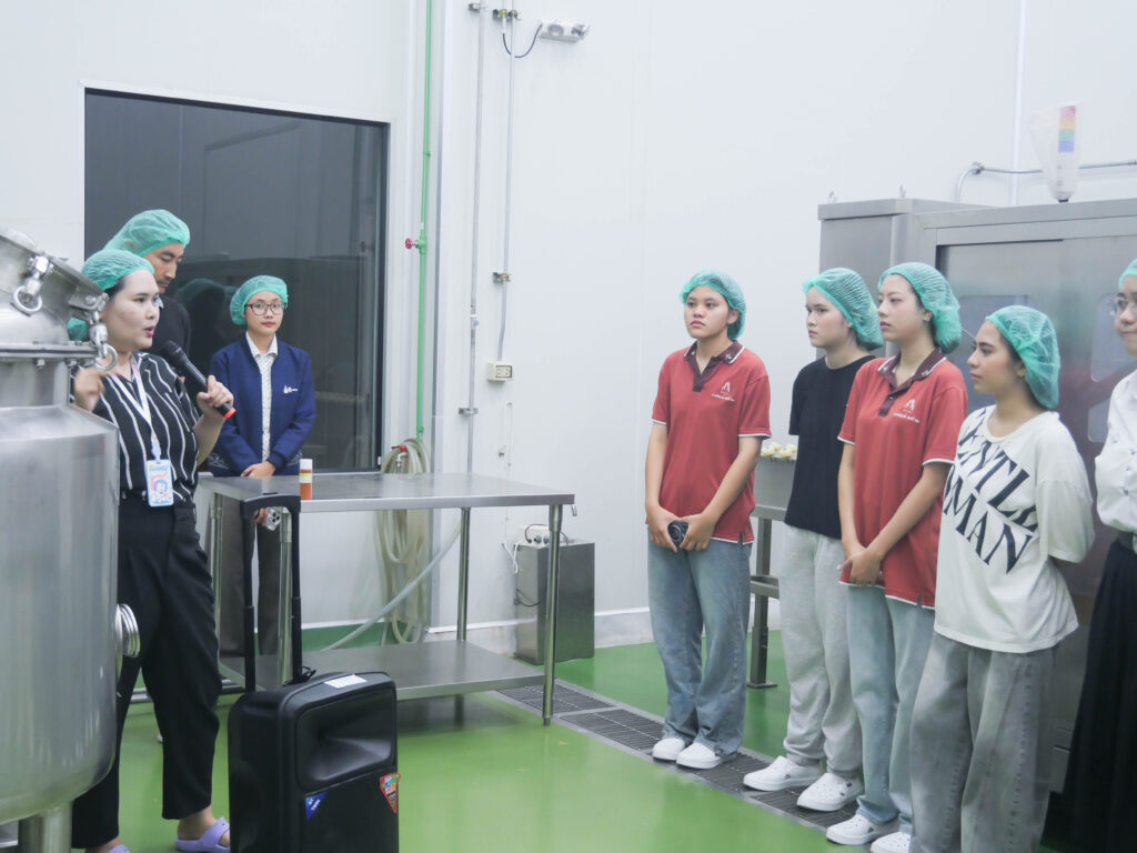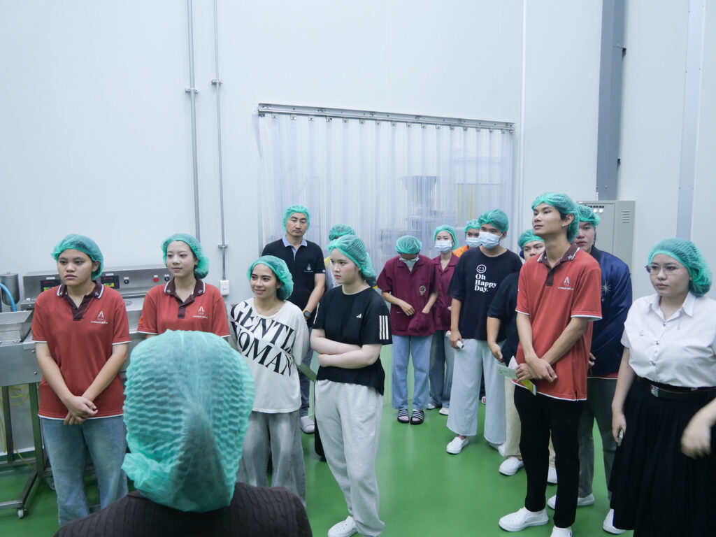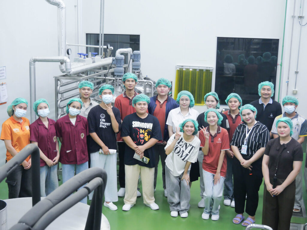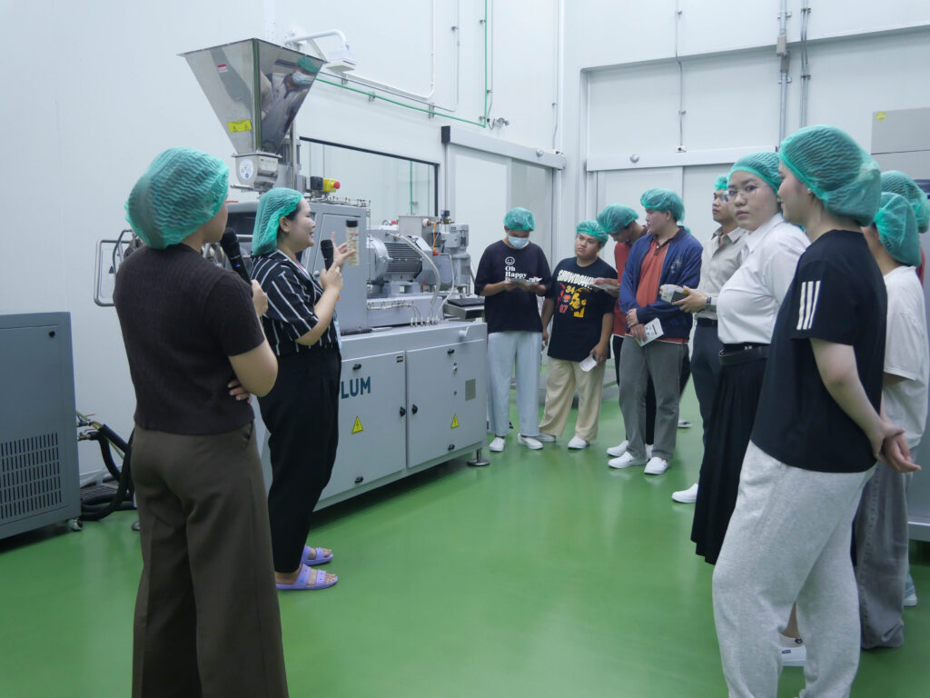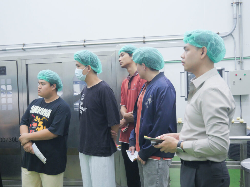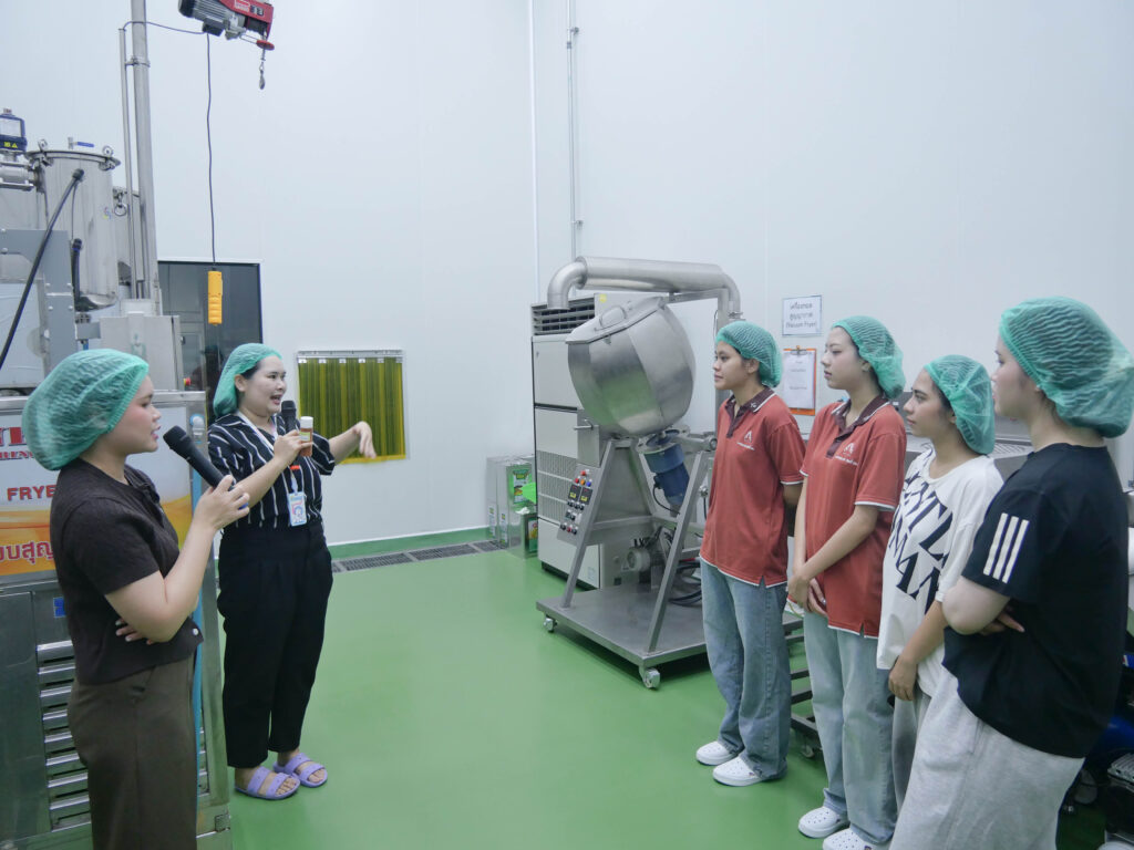 วันที่ 23 เมษายน 2569 โรงงานต้นแบบเกษตรและอาหาร มหาวิทยาลัยขอนแก่น เปิดบ้านต้อนรับคณะนักศึกษาจากหลักสูตรการจัดการนวัตกรรมดิจิทัล วิทยาลัยนานาชาติ เข้าศึกษาดูงานเพื่อเรียนรู้กระบวนการผลิตจริงในภาคอุตสาหกรรม โดยกิจกรรมครั้งนี้มีวัตถุประสงค์หลักเพื่อเปิดโลกทัศน์และสร้างแรงบันดาลใจในการนำนวัตกรรมดิจิทัลมาประยุกต์ใช้กับการออกแบบและพัฒนาผลิตภัณฑ์อาหาร ซึ่งทางโรงงานได้นำเสนอความพร้อมของเครื่องจักรแปรรูปที่ทันสมัยและระบบการดำเนินงานของ Food Pilot Plant ที่ได้มาตรฐาน พร้อมทั้งแนะนำบริการรับจ้างผลิต (OEM) ที่มีมาตรฐานสากลรองรับ  เพื่อแสดงให้เห็นถึงศักยภาพในการสนับสนุนนักศึกษา นักวิจัย เกษตรกร ผู้ประกอบการ SME และ Startup ในการเปลี่ยนไอเดียให้เป็นผลิตภัณฑ์ที่ออกสู่ตลาดได้จริงอย่างมีคุณภาพ ช่วยลดข้อจำกัดด้านการลงทุนเครื่องจักรและเพิ่มขีดความสามารถในการแข่งขันให้แก่ธุรกิจนวัตกรรมอาหารของไทย